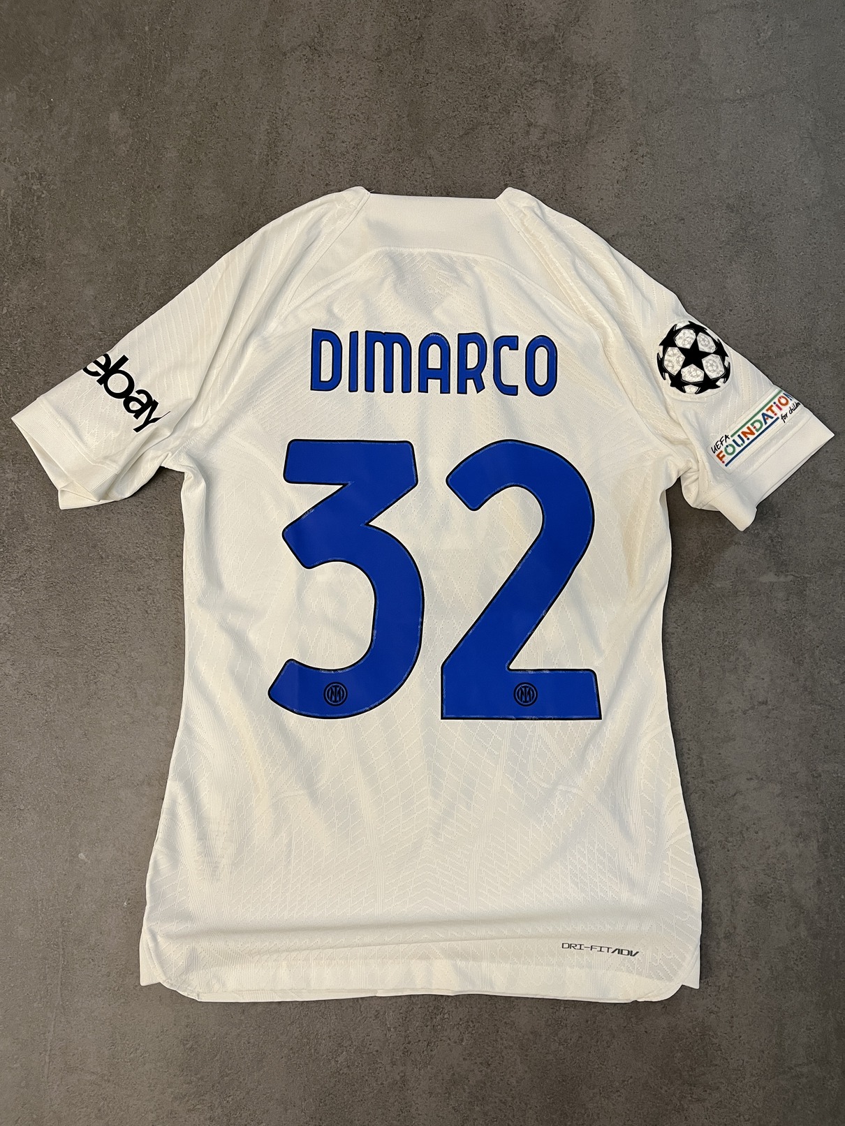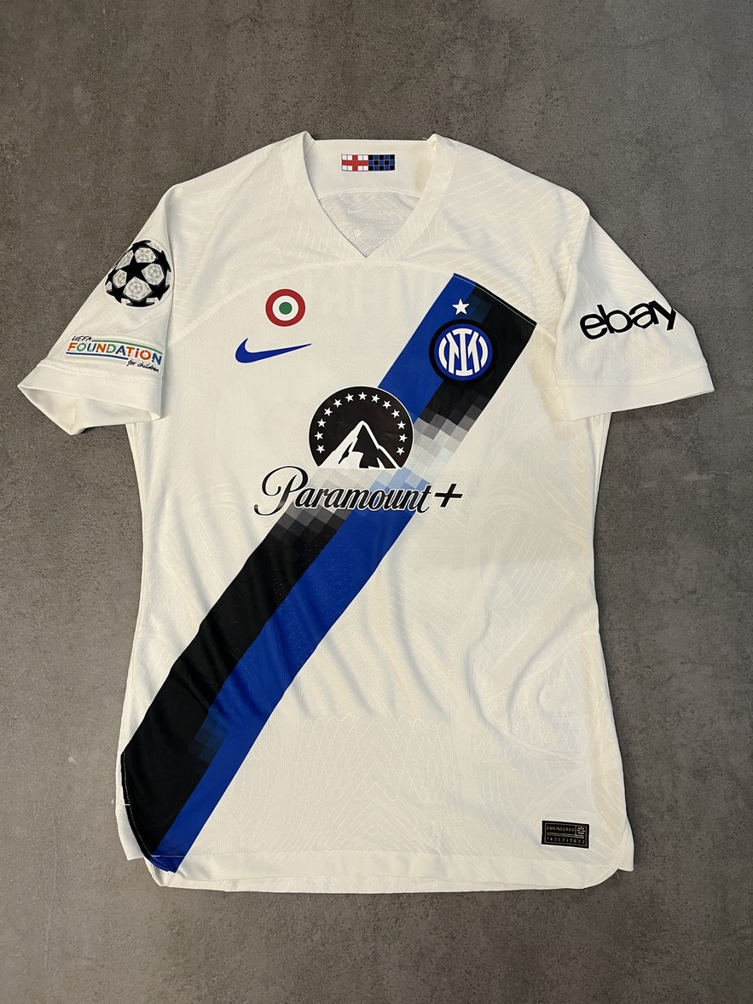 Descrizione estesa:Seconda maglia Inter con patch Uefa Champions League + Foundation su manica destra e sponsor Ebay su manica sinistra, logo Inter e swoosh Nike termo applicati, etichetta lavaggio interna termo applicata, trama maglia leggera. Assenza sul retro dello sponsor UPower sotto al numero in quanto non conforme alla normativa Uefa. Sponsor frontale Paramount+ con logo mai utilizzato nelle maglie di campionato (Da normativa Uefa lo sponsor sulle maglie deve essere uguale per tutti i modelli). Caratteristiche che rendono la maglia unica e differente da quelle in commercio.