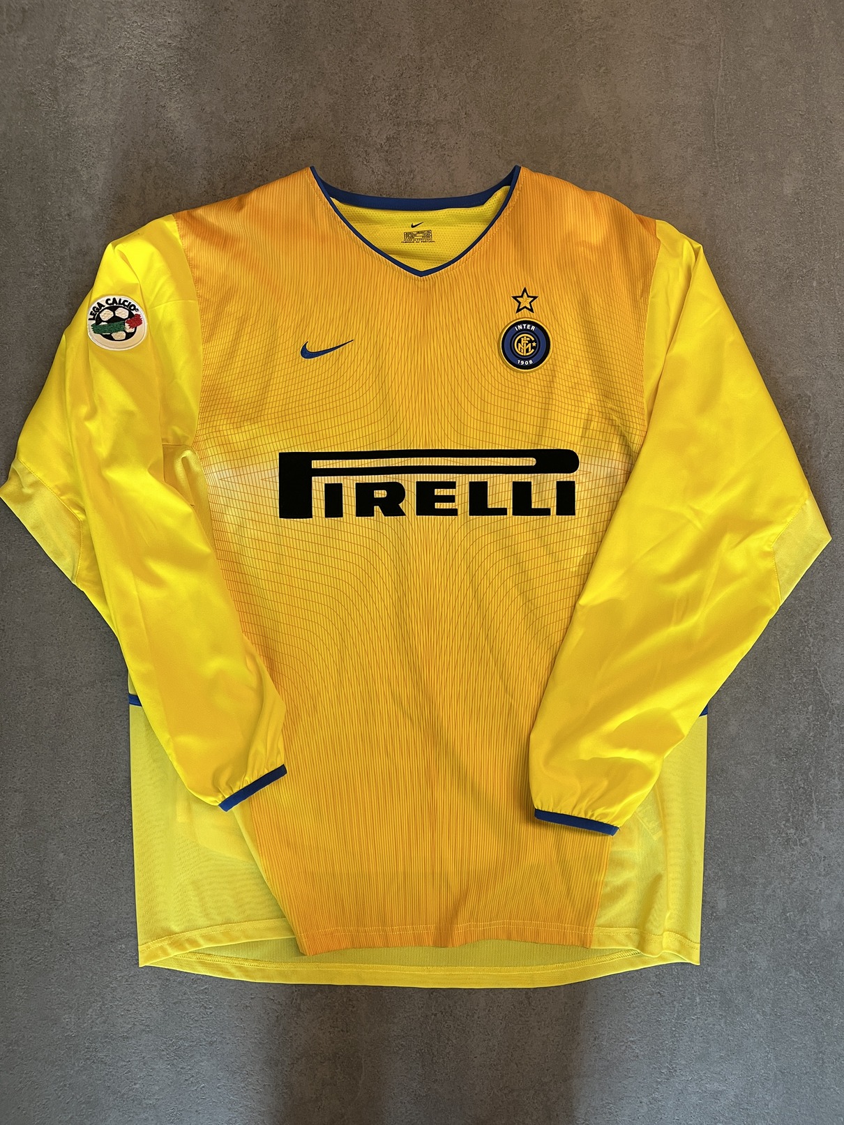 Sponsor Pirelli di velluto in rilievo, swoosh Nike cucito, scudetto Inter in plastichino e feltro cucito. Patch Lega Calcio termoapplicata e cucita sulla manica destra. All'interno della maglia è presente un doppio strato di rete traforata.