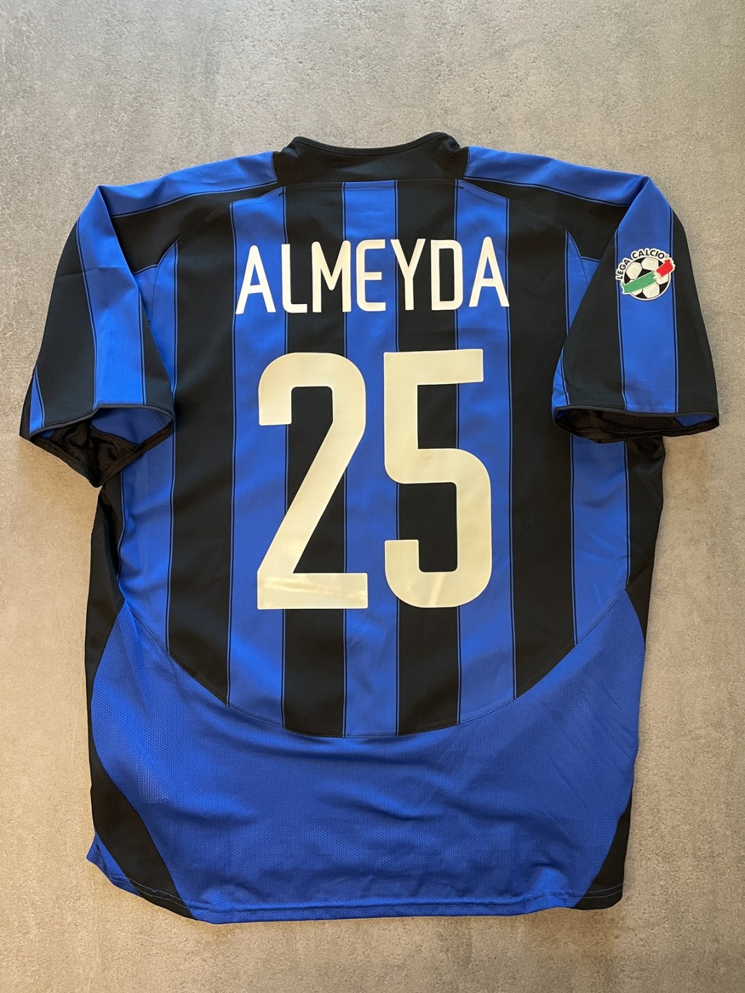 Descrizione estesa:Maglia home a mezze maniche preparata per il calciatore M. Almeyda. Made in Bulgaria taglia XL. Nome e numero ufficiale in Player Size version a differenza delle repliche i cui materiali sono differenti e più pesanti. Presenza di n. 2 etichette in stoffa all'interno con indicazioni lavaggio. Patch Lega Calcio termoapplicata su manica destra. Peculiarità : Questa patch è stata utilizzata solamente durante il girone di andata e poi è stata sostituita da una con nuova grafica.