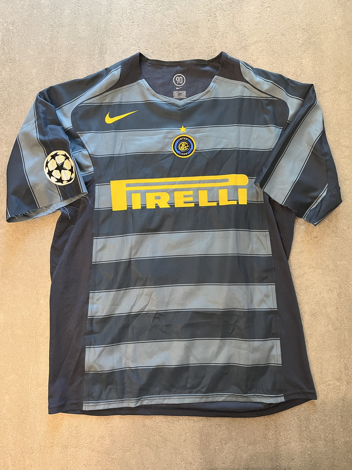 Descrizione estesa:Made in Portugal taglia XL, logo Inter e swoosh Nike termo applicati, Patch UEFA Champions League termo applicata su manica destra.