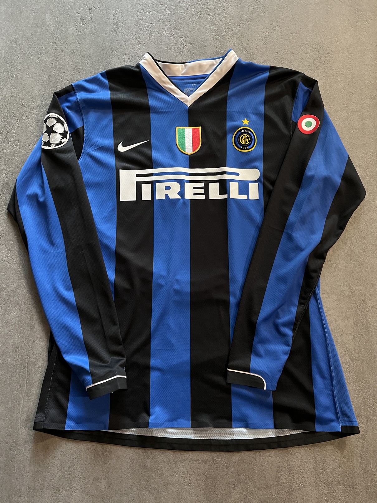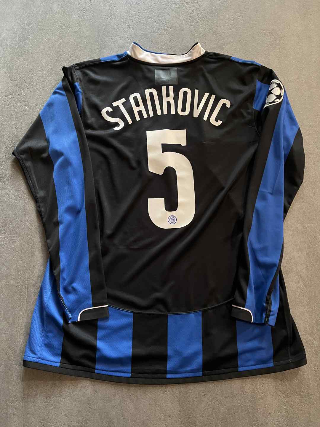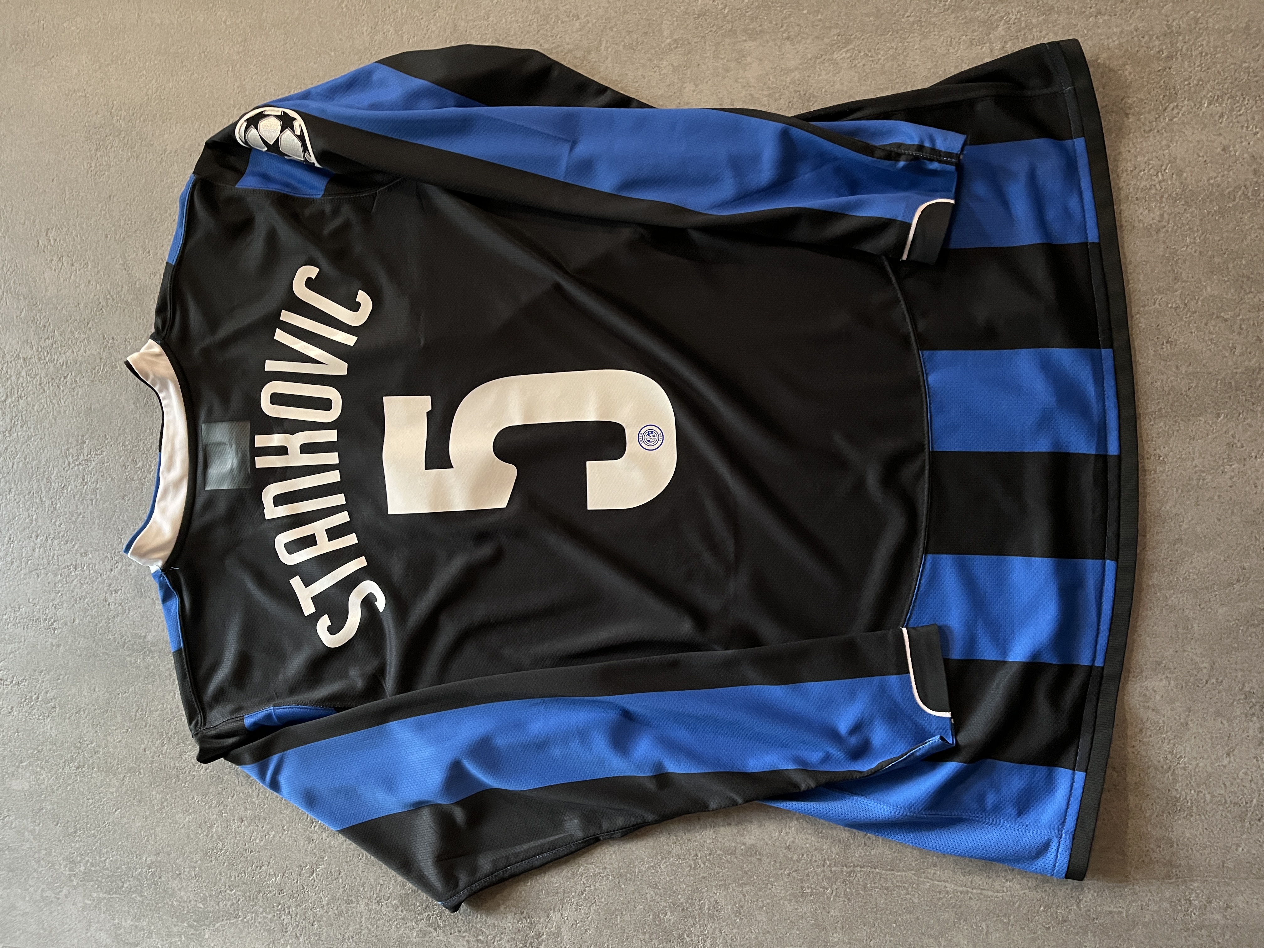 Descrizione estesa:Maglia home a manica lunga preparata per il calciatore Dejan Stankovic Made in Marocco taglia XL. Nome e numero ufficiale in Player Size Version a differenza delle repliche i cui materiali sono differenti e più pesanti. Patch Lextra UEFA Champions League termo applicata su manica destra e patch coccarda detentore titolo Coppa Italia termo applicata su manica sinistra. Scudetto termoapplicato e cucito al petto. Etichetta al collo con il solo swoosh Nike (senza la scritta DRY FIT presente nelle repliche). Assenza della scritta DRY FIT nel retro maglia (presente invece nelle repliche di quella stagione). I bordi della maglia sono tutti termo saldati (nelle repliche invece sono cuciti). Presenza di una sola etichetta piccola internamente alla maglia con data. Particolarità : Retro maglia con sfondo in tinta unita nero e copertura con altrettanto patch nera del blasone di Milano (sotto al colletto) per rispettare la normativa Uefa vigente che non permette di indossare maglie con ulteriori loghi e/o disegni non previsti da regolamento. Maglia mai commercializzata con queste caratteristiche.