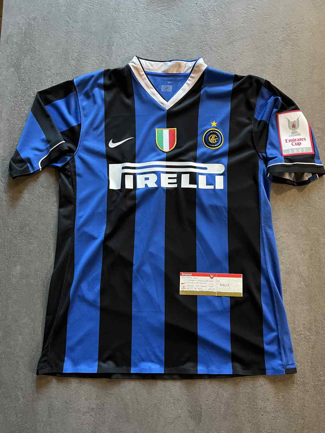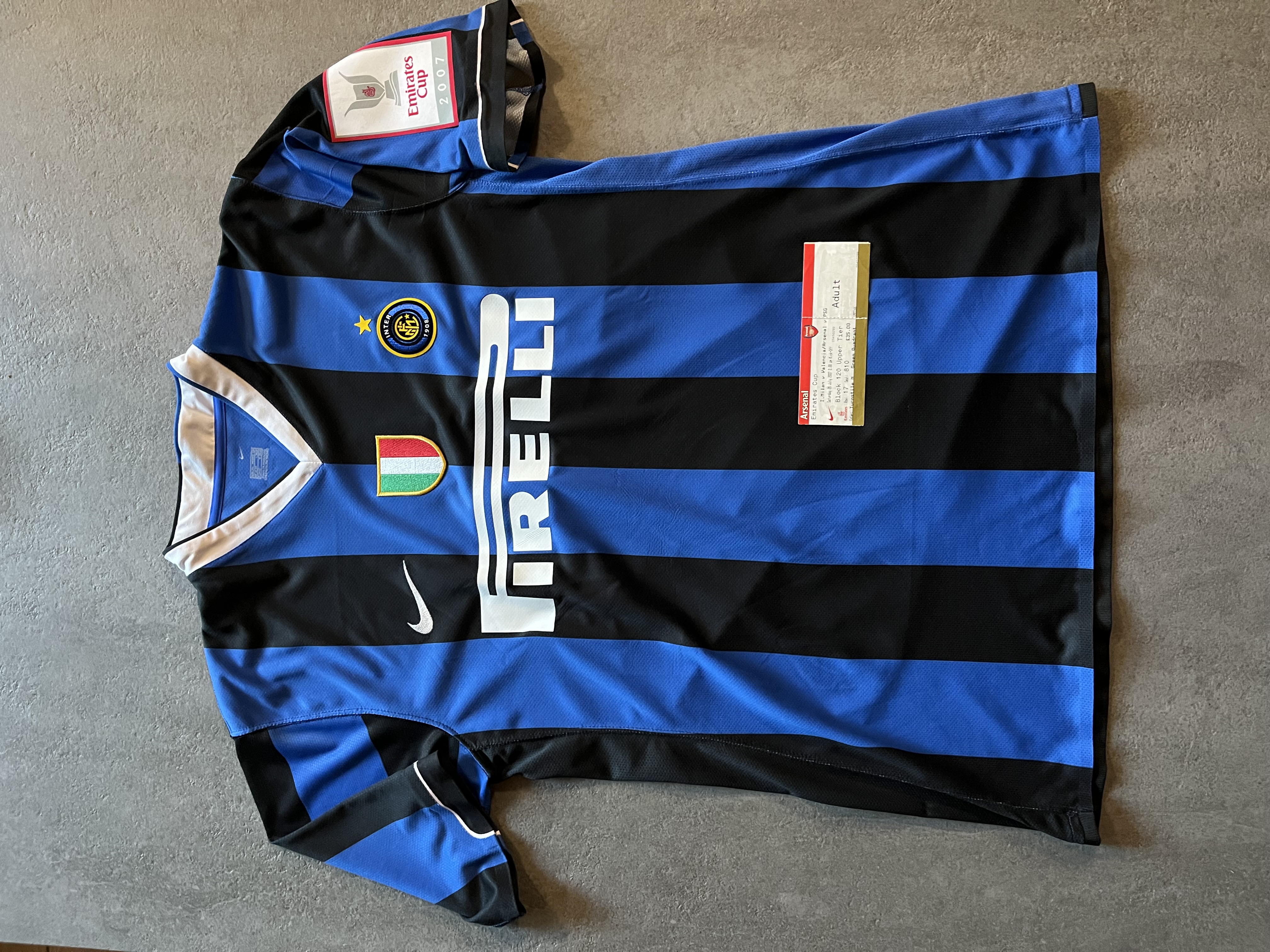 Descrizione estesa:Maglia a mezze maniche utilizzata dal calciatore Luis Figo durante il torneo estivo Emirates Cup a Londra fra ARSENAL e INTER.