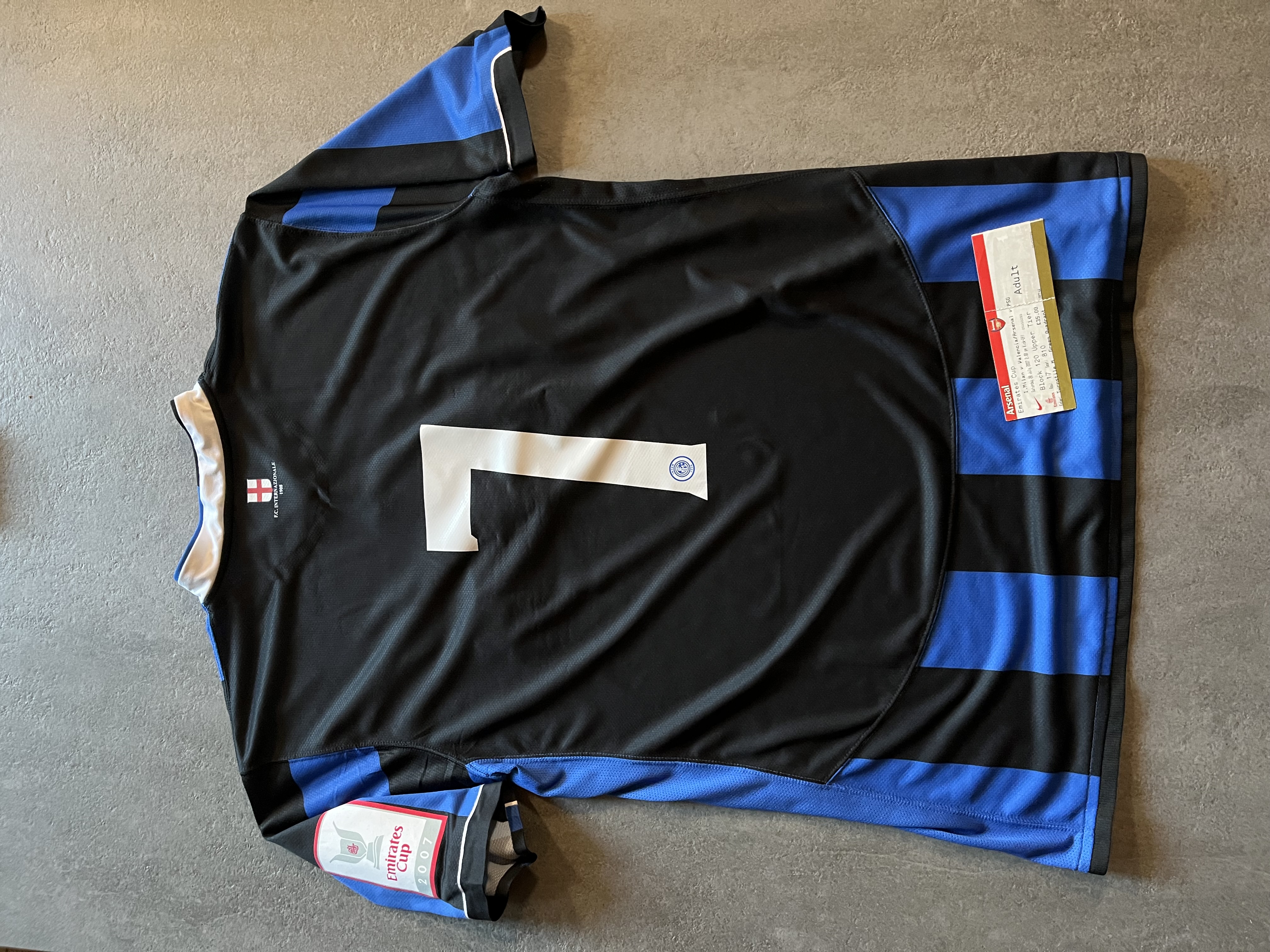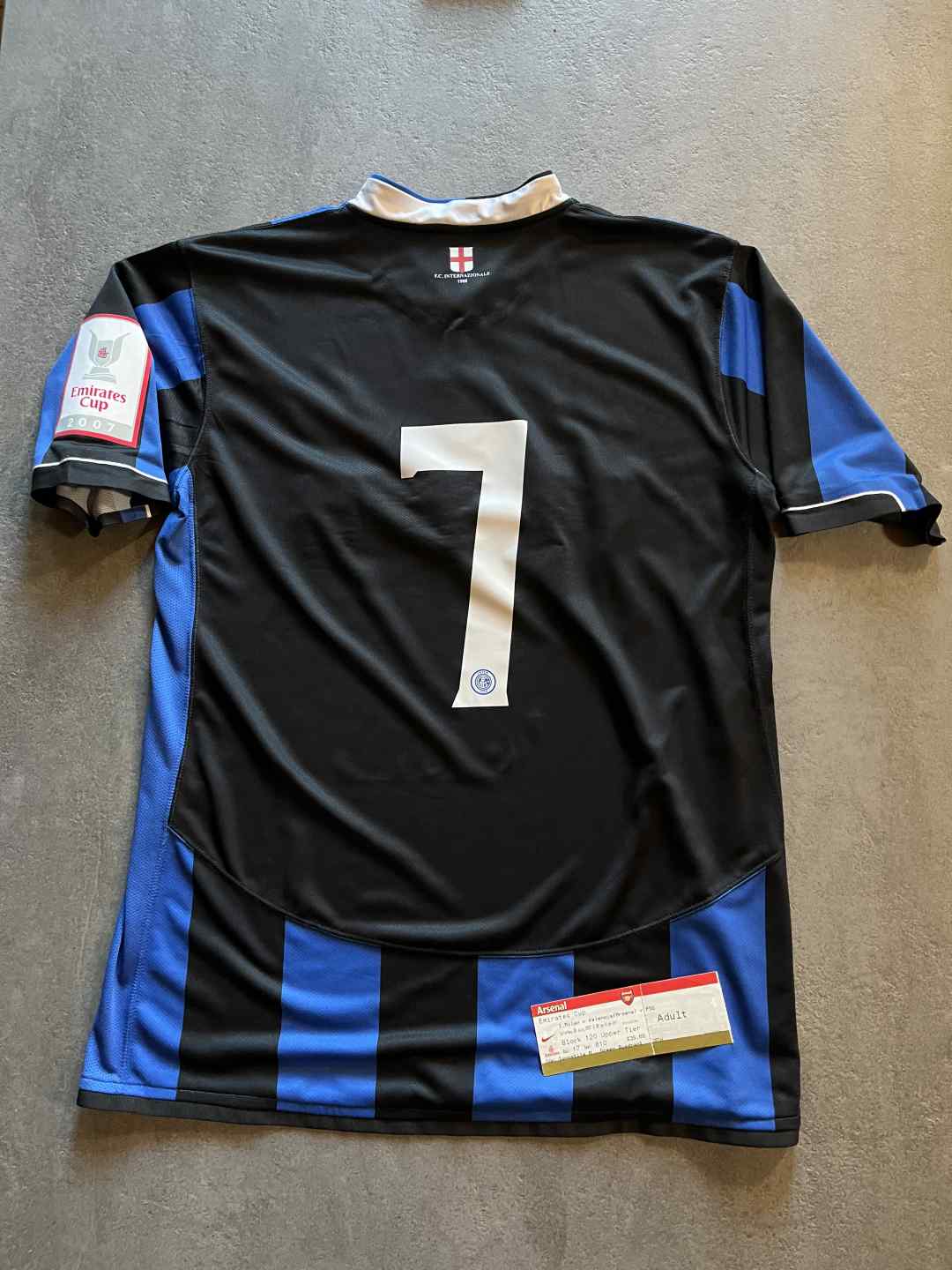 Patch del torneo EMIRATES CUP 2007 termo applicata sulla manica sinistra, etichetta interna al colletto con il solo Swoosh Nike (le repliche hanno anche la scritta DRYFIT), ASSENZA scritta DRYFIT nel retro della maglia (presente nelle repliche), ASSENZA di etichette interne (presenti nelle repliche), scudetto termoapplicato, cuciture termosaldate dei bordi della maglia e nelle maniche (nelle repliche sono cucite), retro maglia completamente nero come quelle usate nelle competizioni UEFA-TIM CUP anno precedente, logo di MILANO termoapplicato sul retro collo, maniche corte, nome e numero ufficiale in PLAYER SIZE (nelle repliche sono in materiale più pesante), made in Marocco, taglia XL.